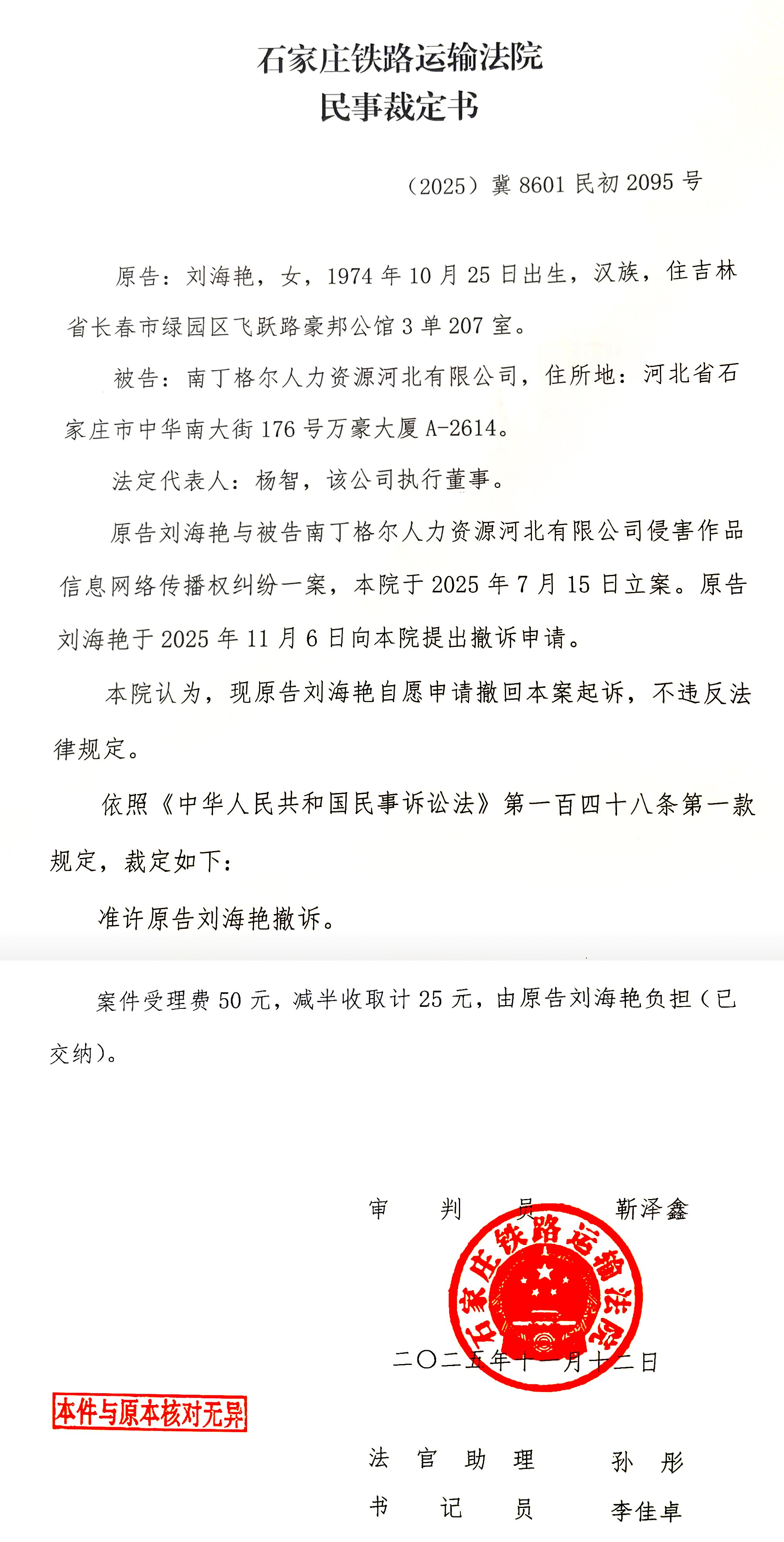 近日,企查查等公开平台可查询到我司涉及一起“侵害作品信息网络传播权纠纷”司法案件(案号为(2025)冀8601民初2095号),为消除疑虑我司郑重声明如下: